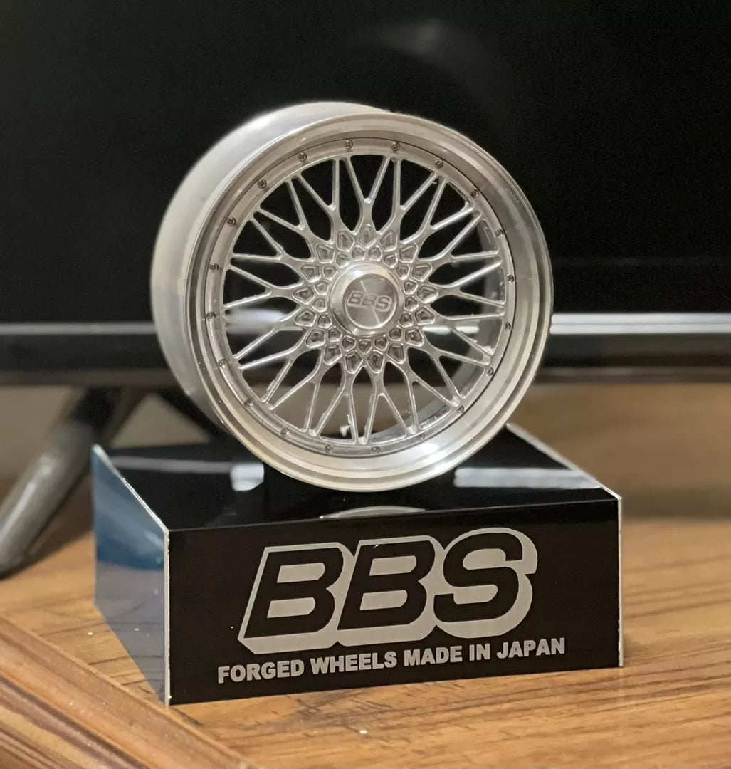 Our forged metal rims bring legendary wheel designs to life in collectible form. From the iconic BBS RS to the timeless RAYS Volk Racing TE37, each piece is crafted with premium metals for exceptional weight, detail, and authenticity. These scaled models showcase the quality and precision that made the originals famous — perfect display pieces for enthusiasts who appreciate the art of wheels. The larger rectangular display base can be bought separately.