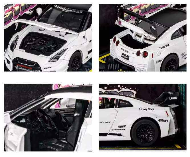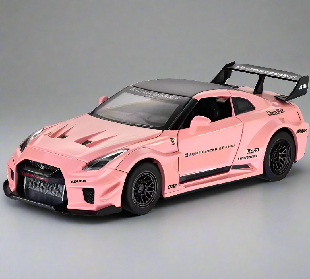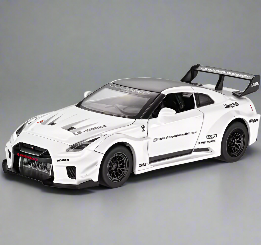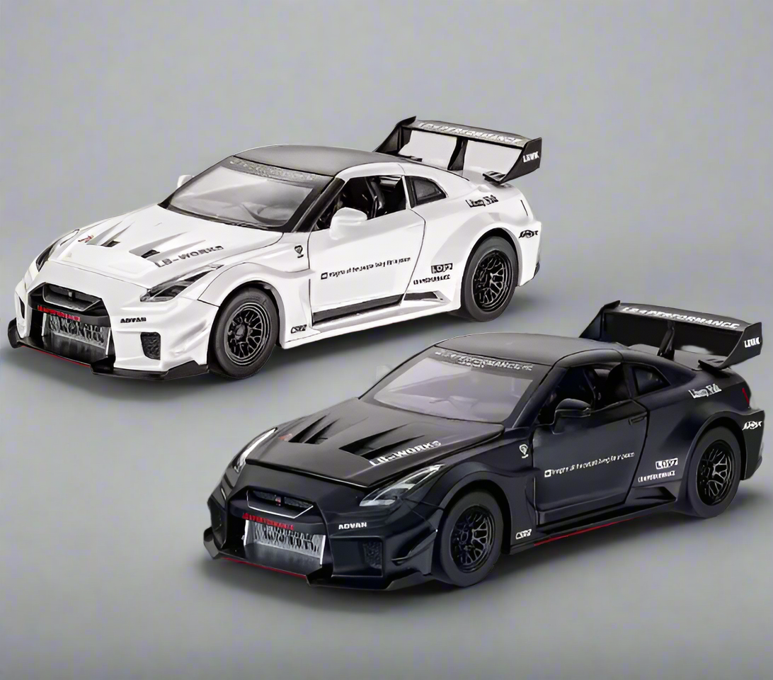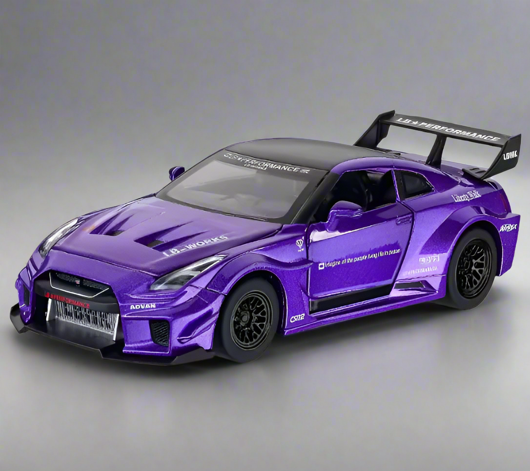 Our Nissan GT-R R35 Liberty Walk edition models captures the perfect mix of Japanese performance and bold tuner culture. The R35 GT-R is already a legend — nicknamed ‘Godzilla’ for its power and dominance — but Liberty Walk’s widebody kit takes it to a new level of aggression. With flared arches, a lowered stance, and track-inspired aero, this model showcases the ultimate street presence, making it a must-have for JDM and widebody fans alike.